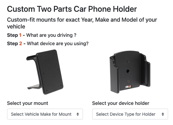 First, select the mount that will fit your car as if it were made just for you (because it was designed for your model!)
